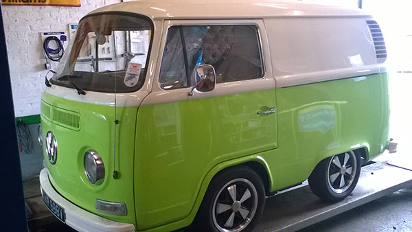 We restored and customized it, keeping the mechanics pretty standard on this 1600cc engine. But ported and with an extractor exhaust for effect, disc brakes as standard, towel rail bumpers, standard “sun burst” wheels, but custom painted by us, tinted rear lights and some of the chrome body trims removed to “clean up the lines a bit”.